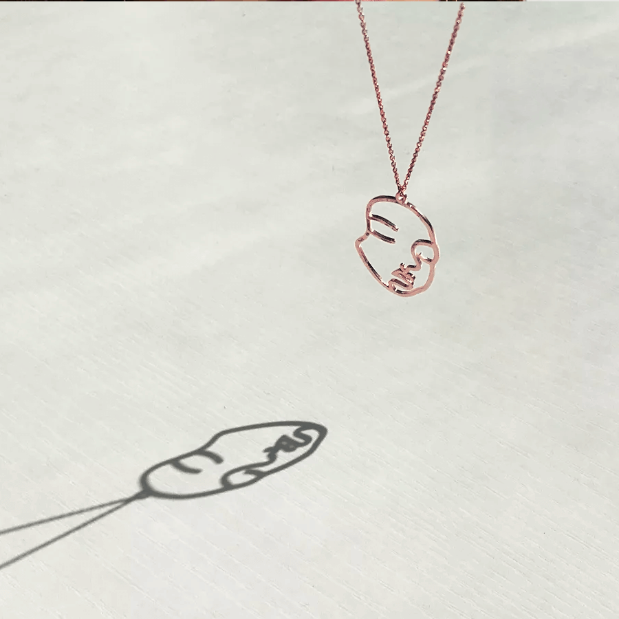 Add some playful charm to your look with the Femme Necklace. Made from 925 silver with a gold overlay, this necklace features a big pendant in the outline of a woman’s face silhouette. Stand out with this quirky and fun accessory! (Don’t be afraid to flirt with fashion!)